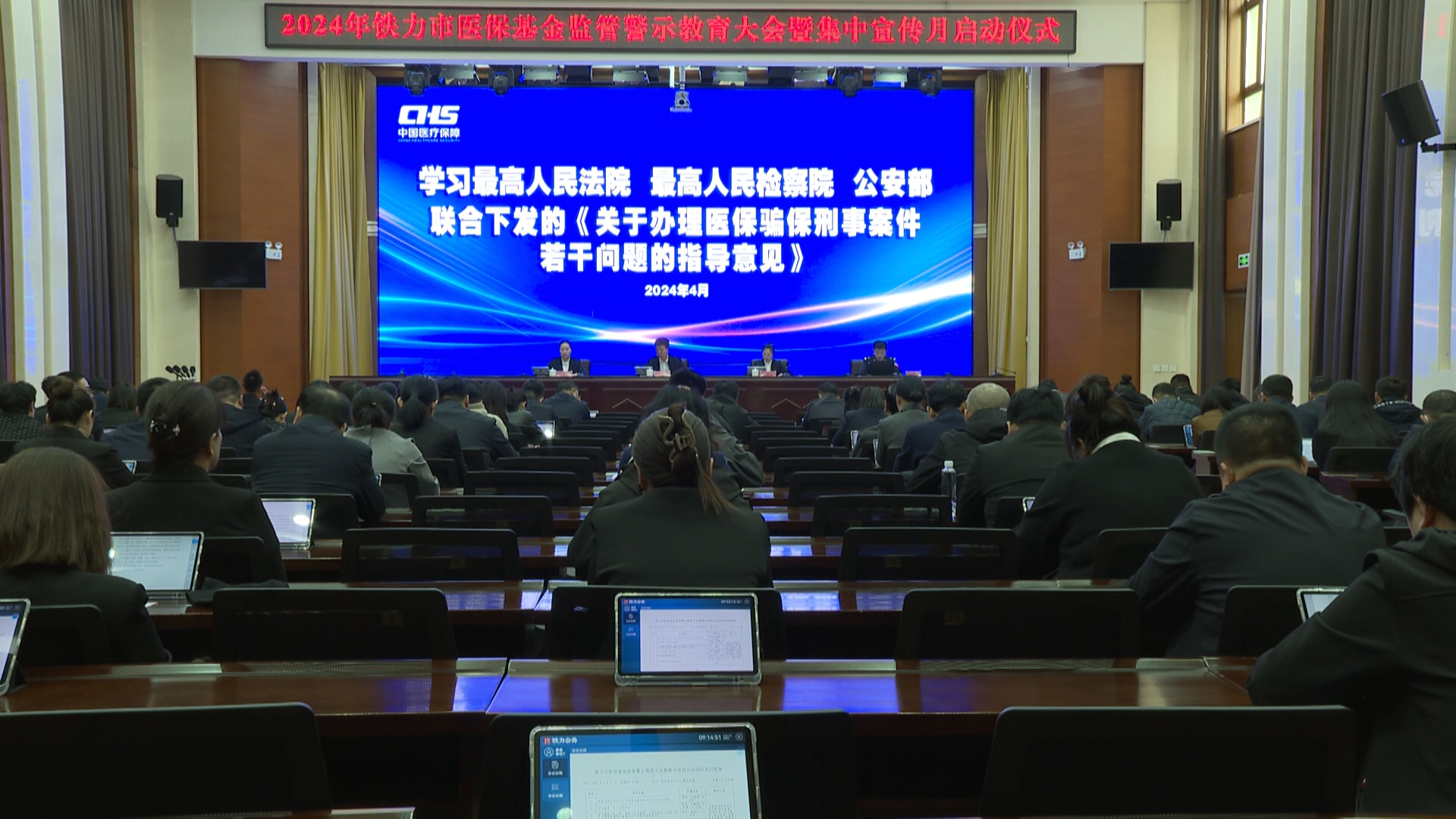 会议宣读了《2024年铁力市医保基金监管集中宣传月活动方案》,学习了最高人民法院、最高人民检察院、公安部联合下发的《关于办理医保骗保刑事案件若干问题的指导意见》,传达学习“两高”典型案例,观看了打击欺诈骗保警示教育片,相关单位作出发言。