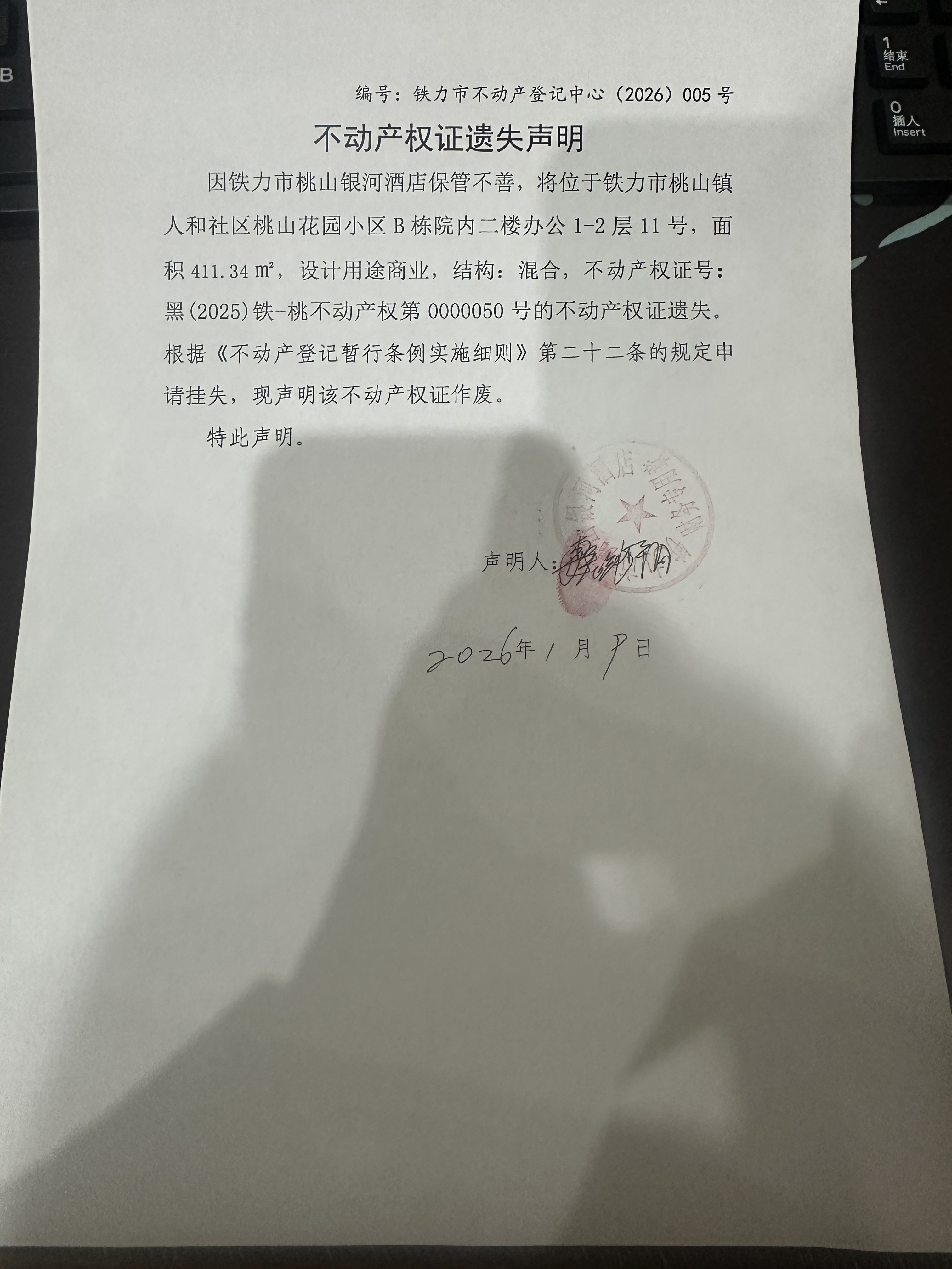 铁力市不动产登记中心不动产证遗失(铁力市桃山银河酒店)公示