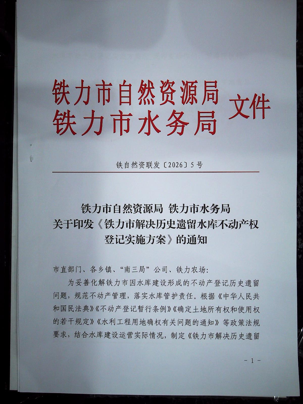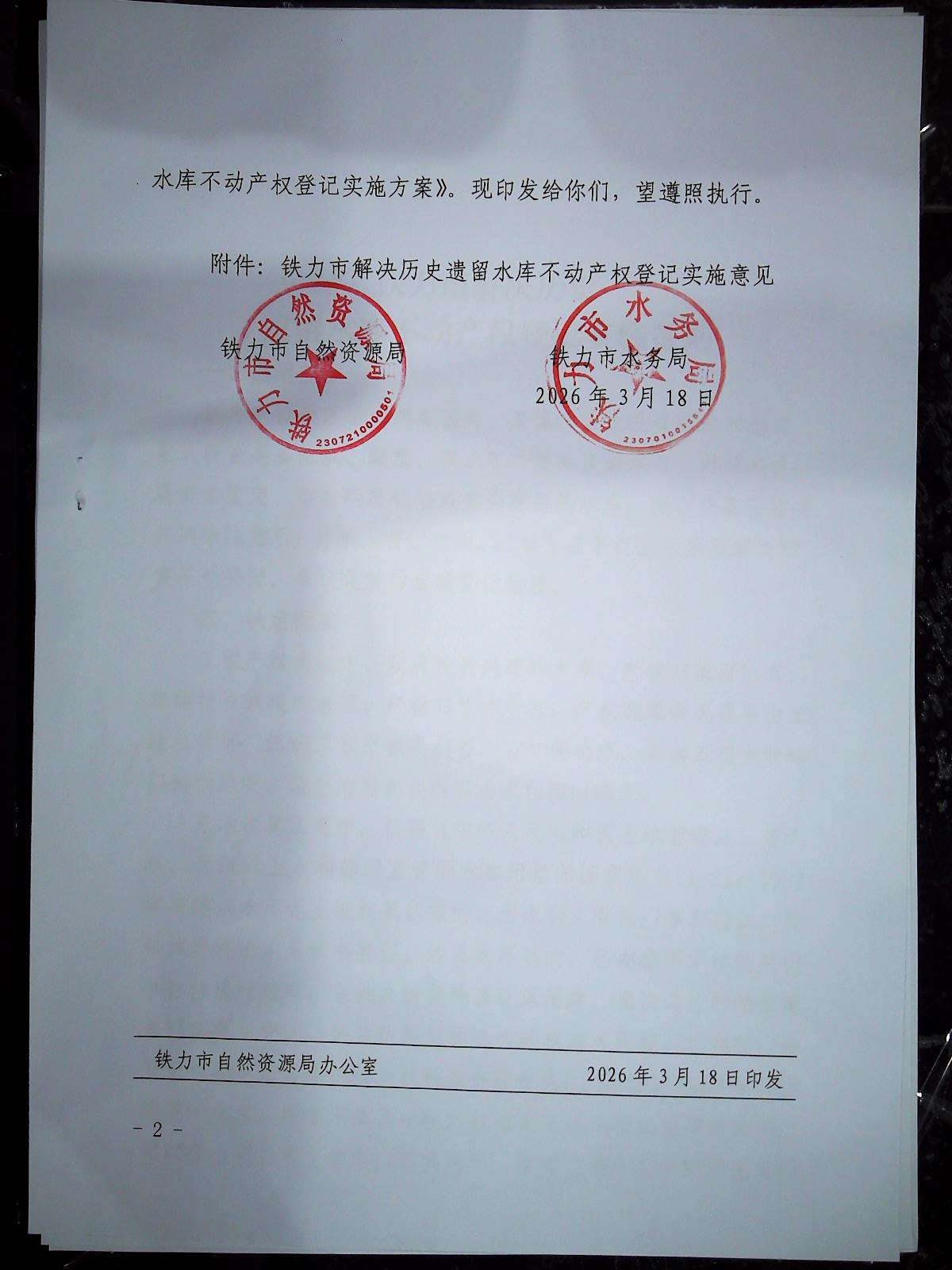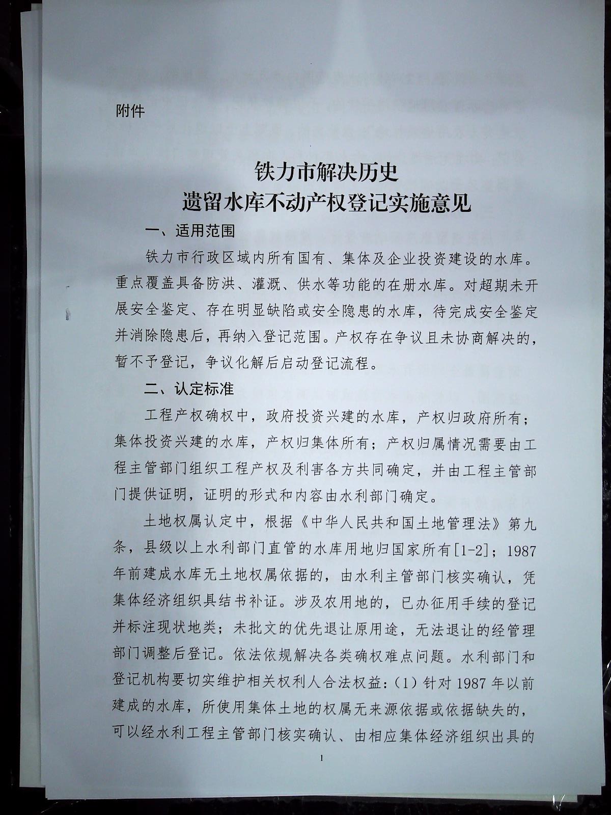 铁力市不动产登记中心(解决历史遗留水库不动产权登记实施方案)公示