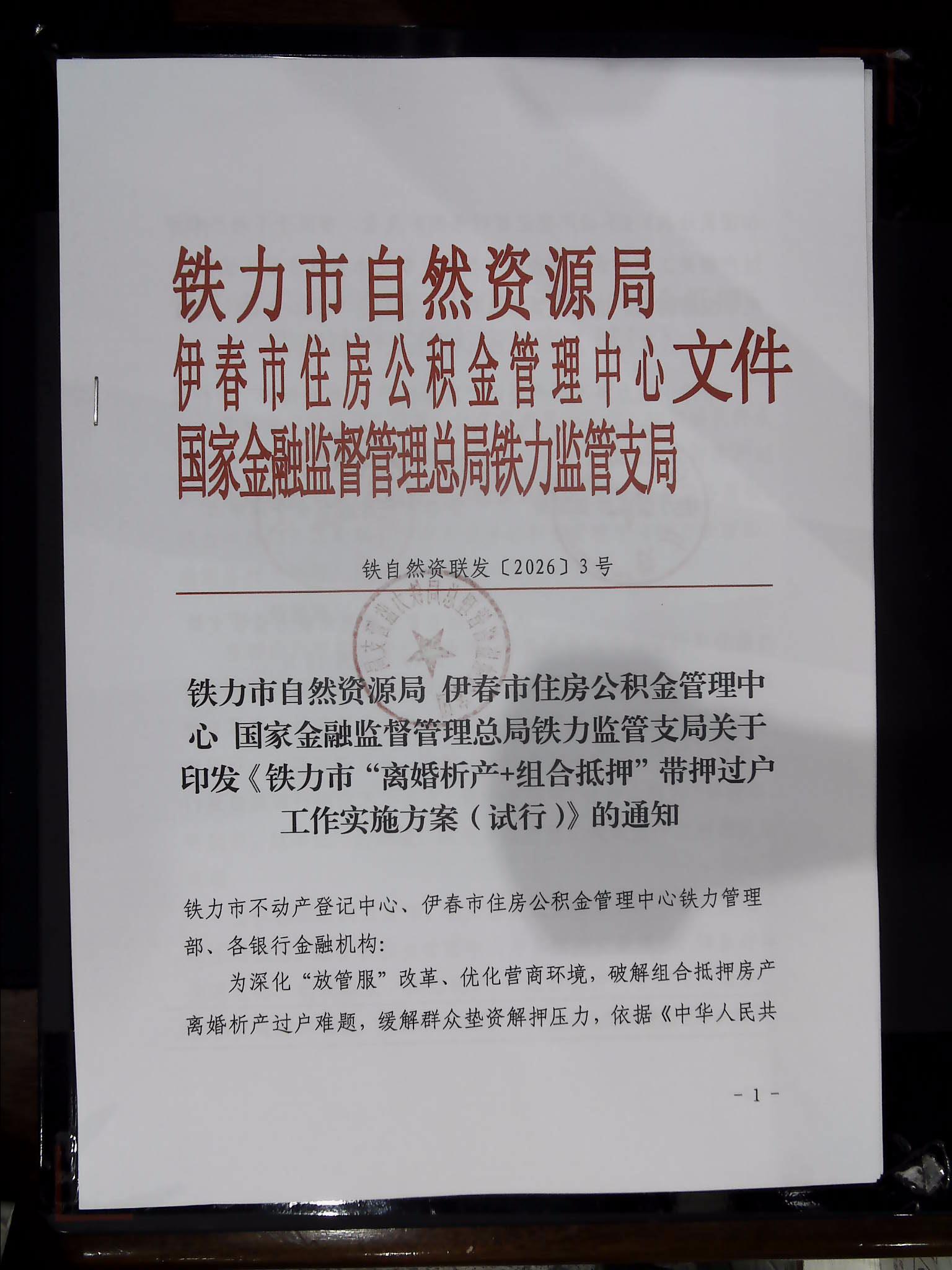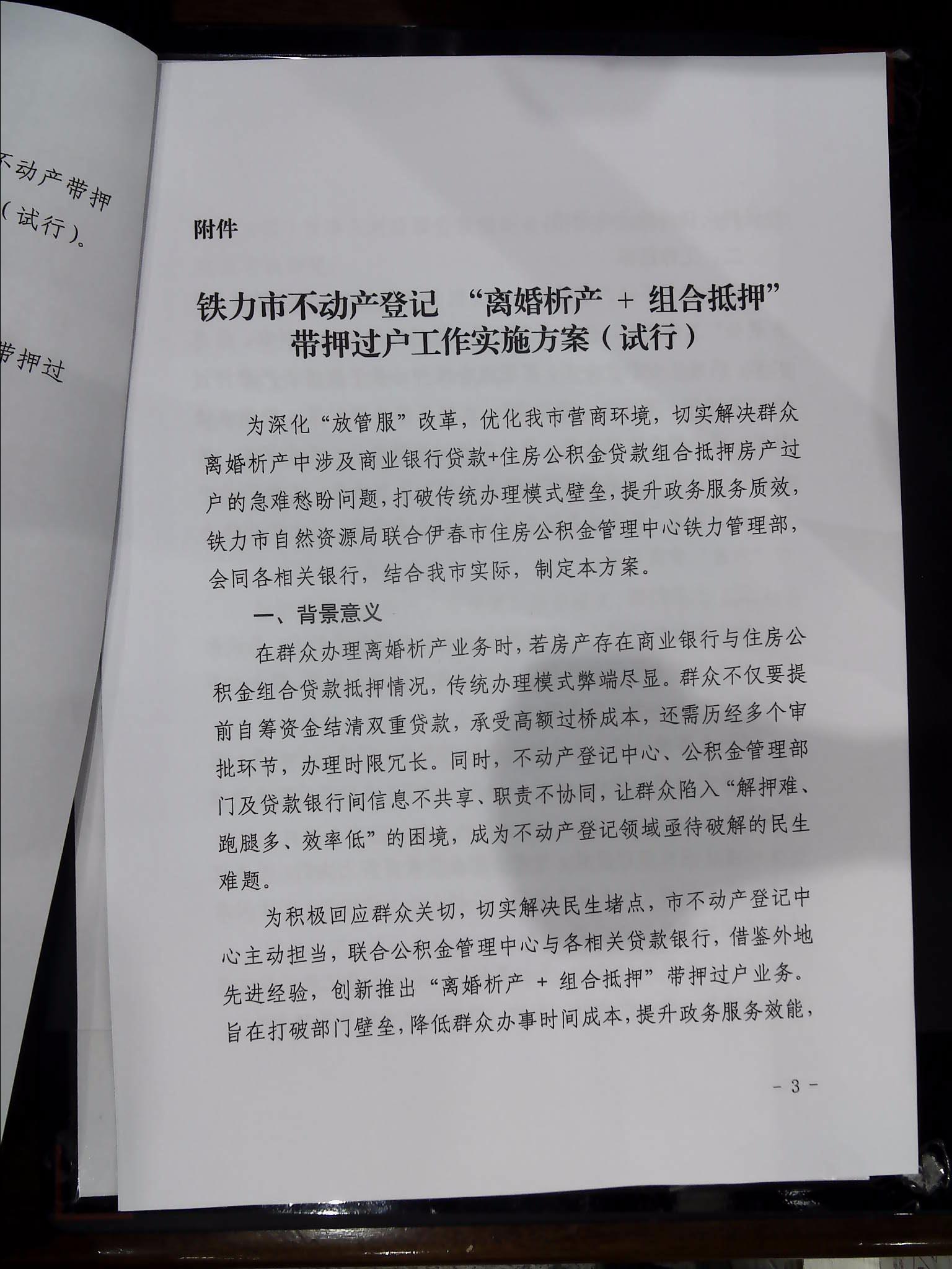 铁力市“离婚析产+组合抵押”带押过户工作实施方案(试行)的通知