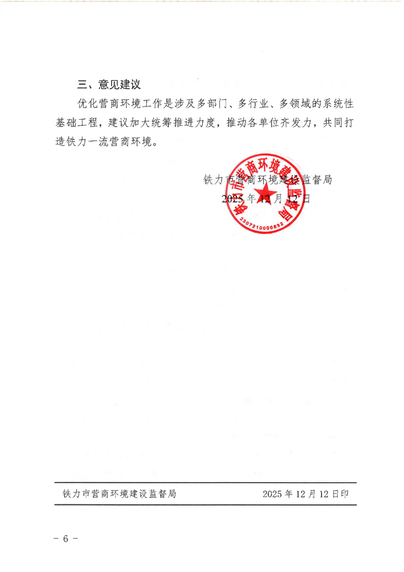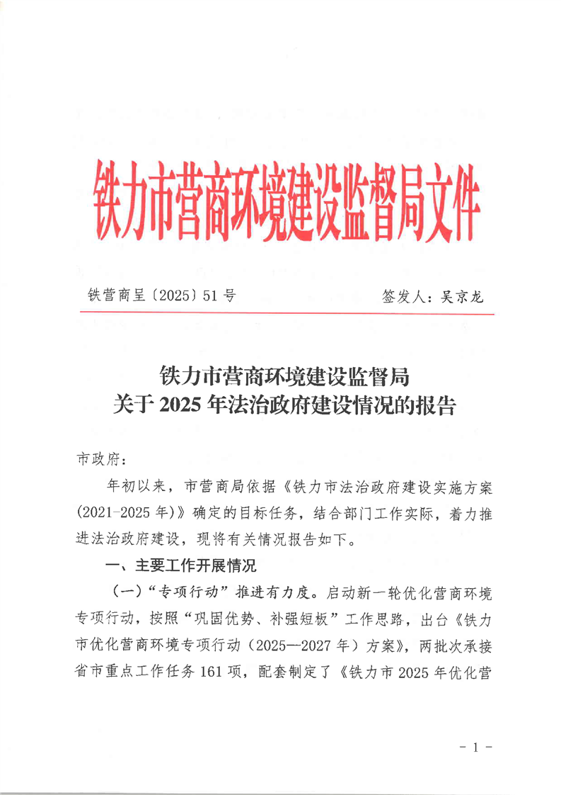铁力市营商局2025年法治政府建设年度报告