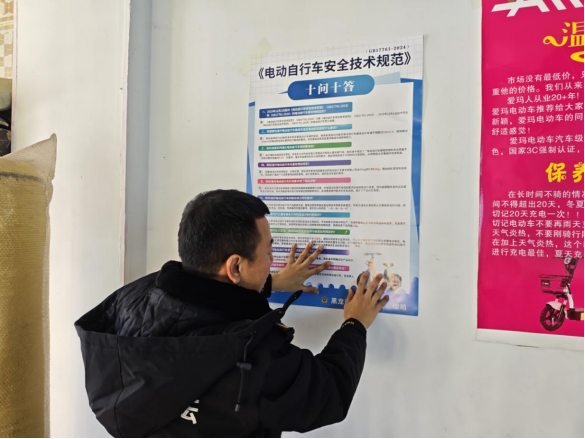 12月1日,《电动自行车安全技术规范》(GB17761-2024)(以下简称“新国标”)正式实施,为确保电动自行车新国标稳步落地,铁力市市场监督管理局立足监管职能,积极组织开展新国标宣传与专项检查行动,对辖区内的电动自行车销售单位开展全面摸排与指导。