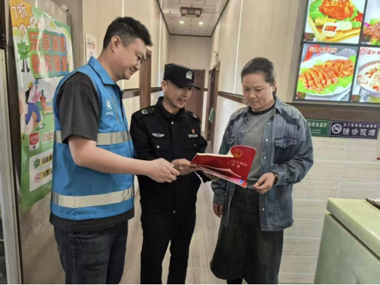 工作人员通过走访商户,一边发放宣传围裙与法律手册,一边结合商户经营类型开展精准宣讲,诚信主题围裙正面印刻“诚信经营礼貌待客”的醒目标语,并印有12348公共服务法律热线电话,让商户在日常经营中时时可见诚信理念,也向消费者传递“诚信经营”的鲜明态度。工作人员聚焦商户经营高频法律问题,通过以案例解析、条文解读、问答互动等形式,将复杂法律条文转化为通俗易懂的经营指南,帮助商户明晰经营红线,规避法律风险。