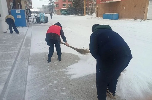 迎着寒风,志愿者们挥动雪铲、扫帚铲雪除冰、分工协作,干得热火朝天。一抹抹“志愿红”绘成了一幅幅鲜艳的“暖心画”,一道道红色身影成为皑皑白雪中最靓丽的“风景线”。虽然天气寒冷,但大家热情高涨,用实际行动践行志愿服务精神,用爱心温暖民心。在志愿者们的通力配合下,原本被白雪覆盖的路面露出了原貌,为寒冬增添了许多暖意。