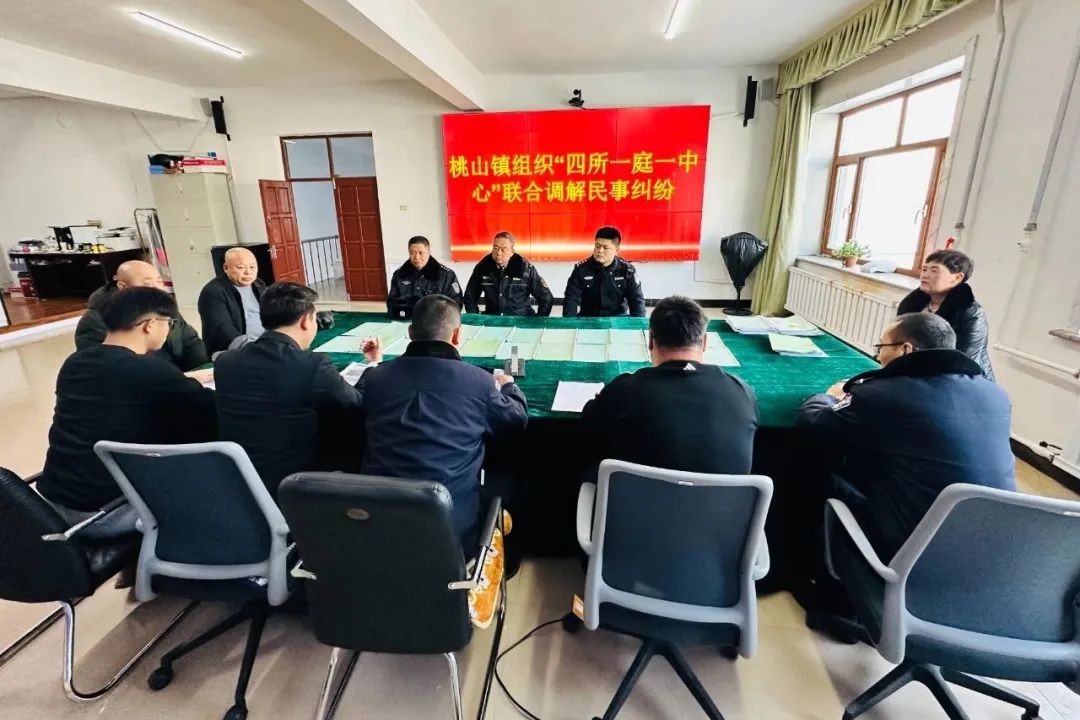 桃山镇深入贯彻落实党的二十大和二十届三中全会精神,创新发展新时代“枫桥经验”,探索“四所一庭一中心+N”工作模式(即派出所、司法所、律师事务所、法律服务所、法庭进驻乡镇综治中心,并与市监、执法大队等行业主管部门以及社区工作者、志愿者、网格员等“+N”多元主体,共同参与矛盾纠纷的预防和调解),推动矛盾纠纷实质化解、源头化解,切实将矛盾风险隐患消除在萌芽状态。