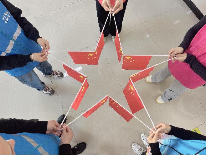 活动现场,鲜艳的五星红旗迎风招展,成为最亮眼的“背景板”。来自各部门志愿者身着各色志愿服装,手持鲜艳的五星红旗、小国旗,有序排列,面带笑容,或摆出“心形”“五角星”等创意造型,相机快门声不断,定格下一张张充满朝气与敬意的同框照。不少干部职工表示,这样的活动既热闹又有意义,让双节氛围更浓厚,也让爱国情怀在互动中深深扎根。