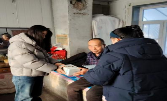 在建设村低保户杨传力家庭,了解到杨传力妻子患有糖尿病,日常监测血糖需求迫切但缺乏专业设备,乡民政部门主动对接相关资源,为其成功申请便携式血糖仪,并安排工作人员现场“手把手”教学——从血糖仪组装、采血方法,到血糖数值读取、异常情况应对,逐一细致讲解、反复演示,确保杨传力妻子能独立、准确完成血糖监测,为后续健康管理提供数据支撑。随后,帮扶队伍前往建设村五保户杨传新家开展帮扶,服务团队同样带来了定制化关怀。杨传新不仅患有高血压,还存在视力残疾,日常监测血压成为难题。乡民政部门结合其身体状况,特意为其挑选具备语音播报功能的新型血压计,解决了其“看不清数值”的痛点;工作人员现场调试设备,反复测试语音播报清晰度,确保杨传新能清晰听清血压数据。