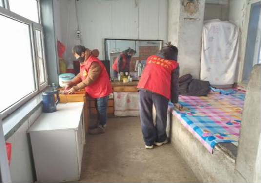 乡服务站考虑到两户家庭生活照料能力有限,家中卫生环境需改善,第一时间联动建设村孝心服务队,对屋内地面、厨房油污、杂物堆积处等重点区域进行全面清理,从擦拭家具到户外清扫积雪,志愿者们不放过任何卫生死角,最终让原本杂乱的家变得整洁有序,使两户家庭感受到志愿者们家人般的温暖。