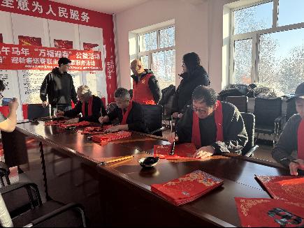 新春将至,年味渐浓。为深入传承中华优秀传统文化,扎实推进新时代文明实践工作,让乡村群众在笔墨书香中感受新春暖意,近日,铁力市文联携手市书法家协会深入王杨乡长富村新时代文明实践站开展2026丙午马年“万福迎春”公益活动暨“我们的节日”迎新春送春联主题志愿服务活动。书法家们挥毫泼墨寄祝福,将饱含美好期许的春联与福字送到村民手中,为即将到来的马年新春增添了浓厚的文化氛围。