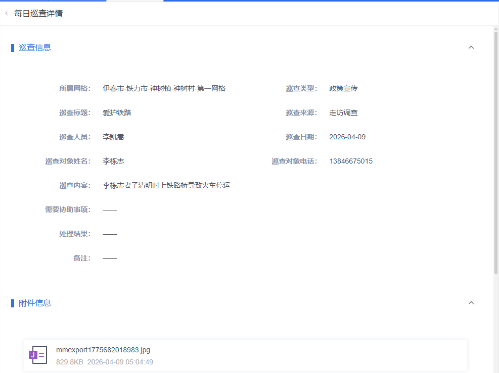 在日常巡防管控上,我镇严格落实护路员岗位职责,实行定人、定岗、定段、定责巡防机制。护路员每日沿铁路线路开展徒步巡查,重点排查铁路防护网破损、警示标志缺失、沿线轻飘物隐患、违规搭建、焚烧秸秆等安全风险,对已发现的一处破损网第一时间上报、快速处置,做到隐患早发现、早预警、早清零。同时,护路员在巡防过程中同步开展流动宣传,及时劝阻危险行为,引导村民共同守护铁路安全,形成巡防与宣传互促共进的良好态势。
