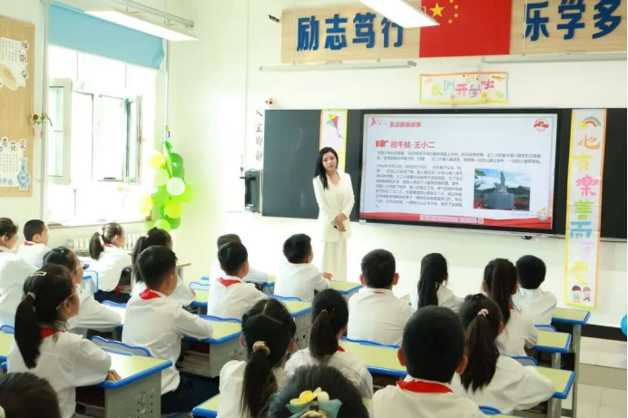 “他牺牲时,口袋里只有半张没寄出的家书。”学生们一一讲述了杨靖宇、赵一曼、抗战小英雄王二小等英烈的故事,当大屏幕逐一亮起英雄的照片,台下一片静默。此刻英雄,不是被高声朗读的传奇,而是悄悄落在肩头的温度。