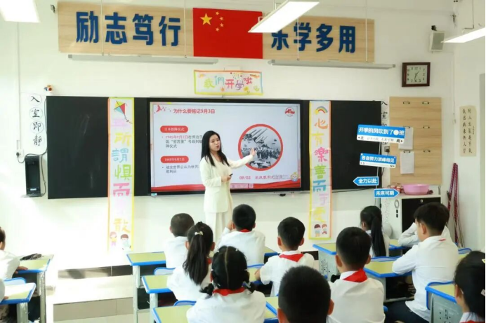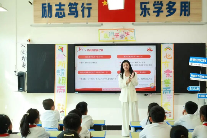 “世界反法西斯战争胜利纪念日是哪一天?”“中国战区受降仪式在哪座城市举行?”……“十问十答”环节把现场气氛推向高潮。学生们踊跃抢答,掌声此起彼伏。