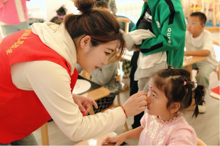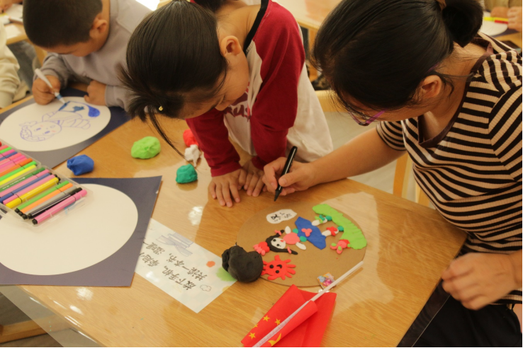活动开始,阳阳老师播放了一段展现各民族生活风貌的短视频,从内蒙古辽阔草原上的那达慕盛会,到云南傣族泼水节的欢乐场景;从新疆维吾尔族精美的艾德莱斯绸,到广西壮族色彩斑斓的壮锦,丰富的画面瞬间吸引了孩子们的目光,巧妙地引出了民族团结的主题。随后,阳阳老师借助精心制作的PPT,为大家讲述各民族交往交流交融的故事。孩子们听得格外认真,眼神中满是对各民族同胞的好奇与敬意,在交流中明晰民族团结的重要意义,深刻理解“各民族像石榴籽一样紧紧抱在一起”的深刻内涵。在问答互动环节,孩子们积极举手,分享自己身边不同民族小伙伴的故事,现场洋溢着欢快又温暖的气息。在民族手作环节,大家默契配合,用彩纸、粘土、水彩笔等材料,制作具有民族特色的手工作品。在创作过程中,大家彼此学习、相互启发,在动手创作中进一步拉近了距离,深化了对民族团结的感悟。