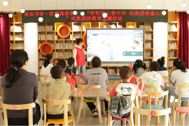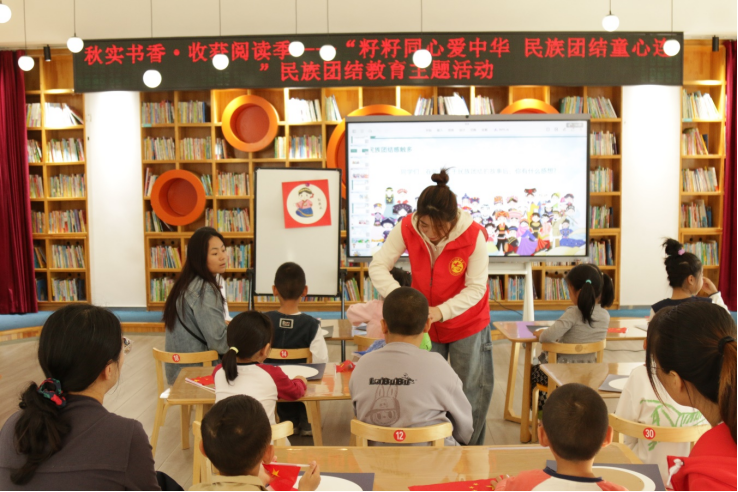 为深入开展“放下手机读会儿书”主题活动,为厚植少年儿童民族团结情怀,筑牢爱国主义思想根基,9月27日,铁力市图书馆在少儿分馆开展“籽籽同心爱中华 民族团结童心连”主题教育活动,以生动活泼的形式引导15组家庭共同感受民族团结的深厚内涵,共绘爱国同心圆。