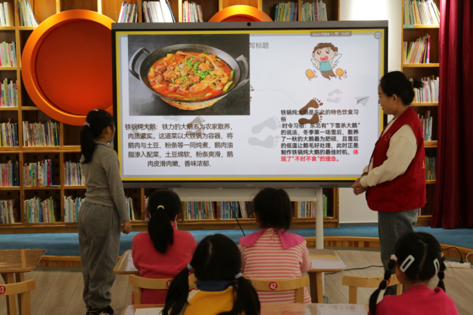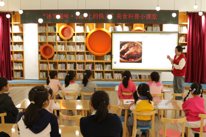 为深入贯彻“放下手机读会儿书”阅读夏令营活动,让少年儿童沉浸式感受本土冰雪饮食文化魅力,11月8日,铁力市在图书馆少儿分馆以“雪国美食”为核心纽带,成功开展“冰雪滋味·舌尖上的铁力”美食科普小课堂,以童趣为舟,以美食为桨,将地域文化、饮食知识与趣味互动深度融合,载着小朋友们进行了一场穿越冰雪的味觉与文化探索之旅,在欢声笑语中深植了家乡文化的种子。