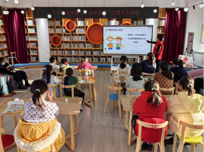 为深入践行社会主义核心价值观,将“勤俭节约”的传统美德根植于儿童心中,引导青少年从小树立粮食安全意识,11月30日,铁力市图书馆在少儿分馆以“放下手机读会儿书”为核心精心策划了“光盘小卫士·指尖传节俭”主题手工活动。活动以多维互动形式解读节约内涵,用创意实践传递光盘理念,让孩子们在沉浸式体验中感悟“一粥一饭,当思来处不易”的深刻道理,为培育新时代节俭好少年筑牢精神根基。
