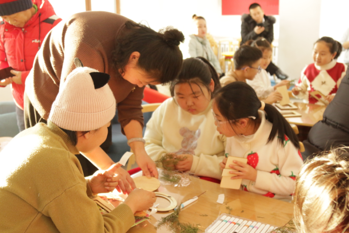 手工创作环节成为文明理念的具象表达。松枝、彩绒球与相框在孩子们手中巧妙组合,一棵棵形态各异的“文明松树”应运而生。松树象征着坚韧不拔,正如文明素养需要久久为功的培育;松枝的苍翠与冰雪的洁白相映成趣,恰似文明行为为家乡冬日增添的亮色。孩子们用小手寄托心愿,承诺要做冰雪季里的“文明小使者”,以彬彬有礼的言行、爱护家园的行动,为铁力的冰雪名片添彩。