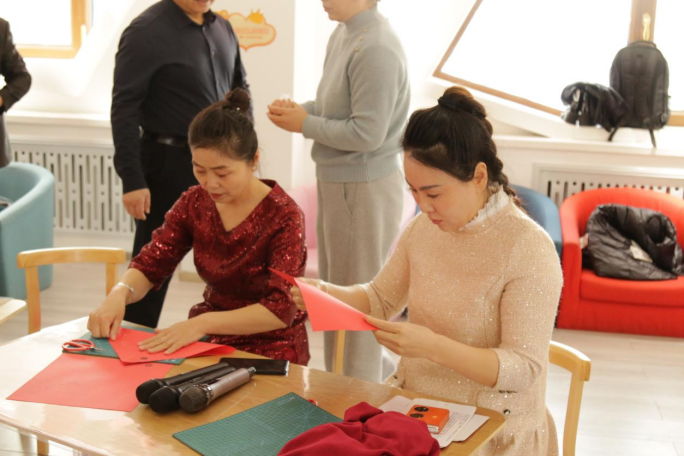 朗诵落幕,剪纸体验温情开启。现场红纸翻飞,暖意融融,读者们从基础折叠学起,手持剪刀灵巧裁剪。松枝映雪、冰河初融、瑞兽迎春等图案在指尖渐次成型。大家或静心钻研,或交流心得,讨论声与赞叹声交织,充分感受手工创作的乐趣。