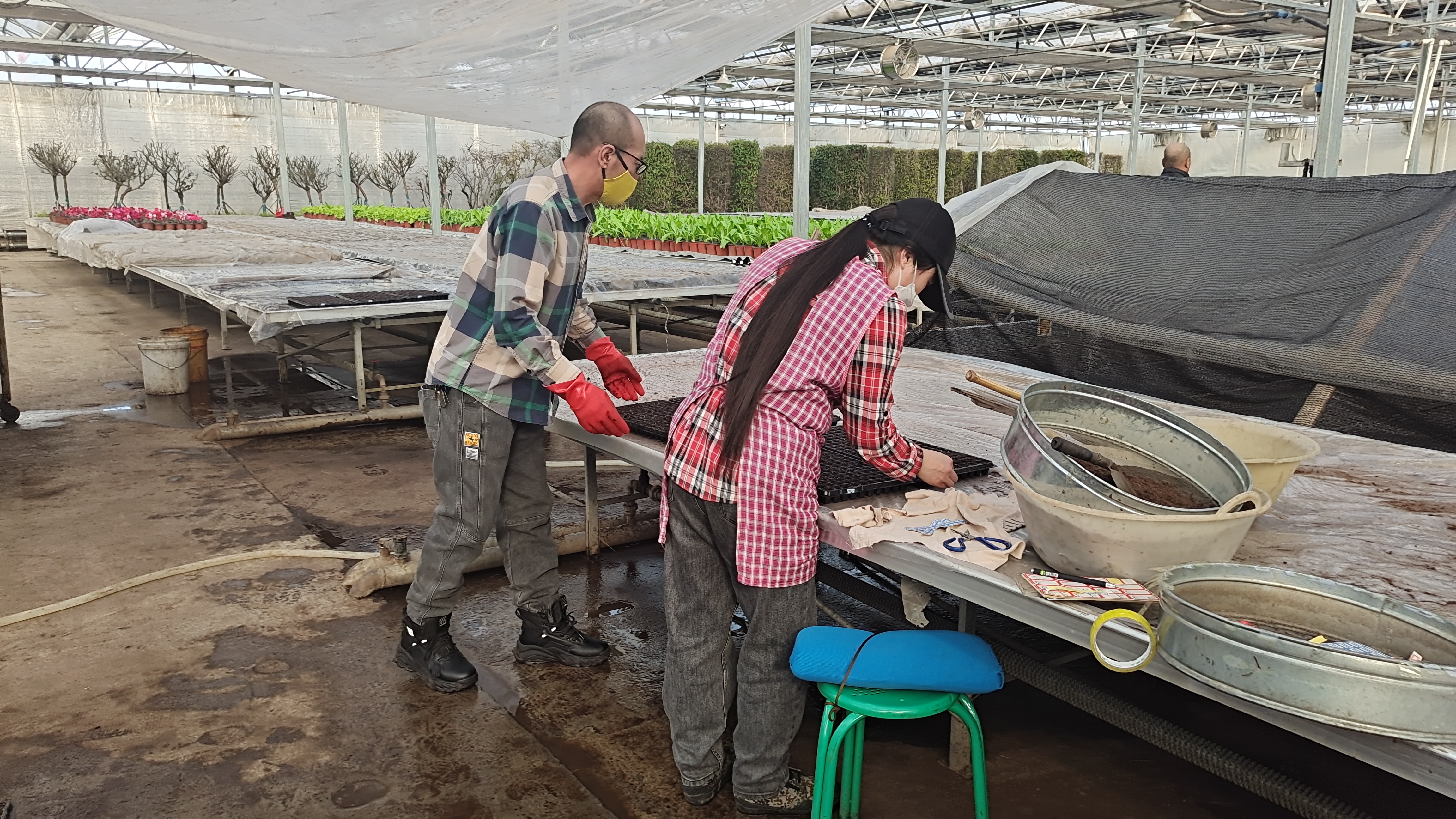 我服务中心提前部署规划,筹备花卉育苗资材。自春节前夕,在做好疫情常态防控工作的同时,抓好温室花卉育苗生产工作。截至目前,已完成基地内一万盘穴盘的全面消毒工作,保障花苗预防病害侵染。此外,在做好催芽室内温度、空气湿度等生态因素控制工作后,陆续开展催芽和播种工作。今年计划播种近200万,其中,多年生花卉有柳叶马鞭草、蛇鞭菊等10余个品种,一年生草本有垂钓牵牛、矮牵牛、鸡冠花等20个品种。温室内,工人们正井然有序开展春季花卉培育基地生产工作,配比基质、装穴盘,所有花卉预计6月初陆续移栽到大街小巷。